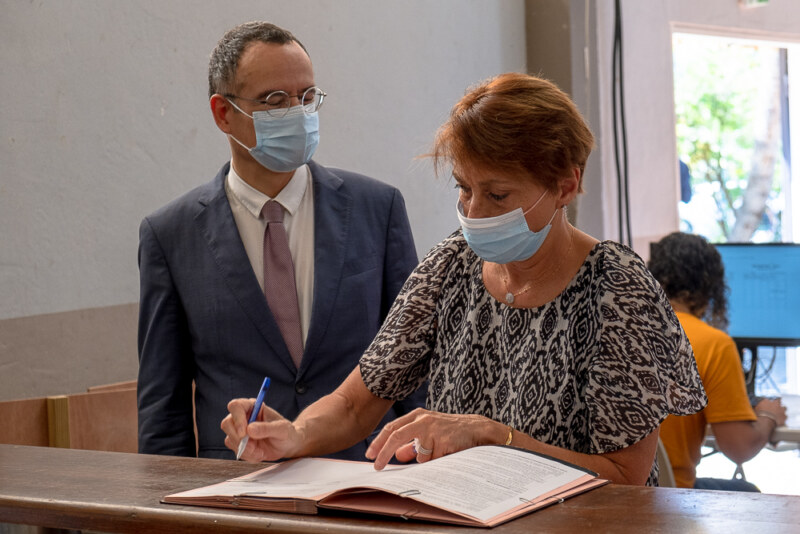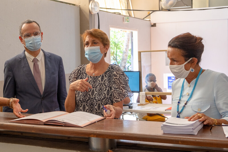 Opérationnel depuis le 28 janvier dernier, le centre de vaccination de l’Étang Saint-Paul a été inauguré ce vendredi 29 janvier en présence du Sous-Préfet, Olivier TAINTURIER, de la directrice de l’ARS, Martine LADOUCETTE, de la Députée, Karine LEBON, de la Maire de Saint-Paul Huguette BELLO, de l’élue déléguée à la politique de prévention santé Laëtitia LEBRETON et du colonel Patrick LALLEMAND, médecin chef du SDIS. Ce centre devrait accueillir, au plus fort de sa fréquentation, entre 80 et 150 candidats à la vaccination.