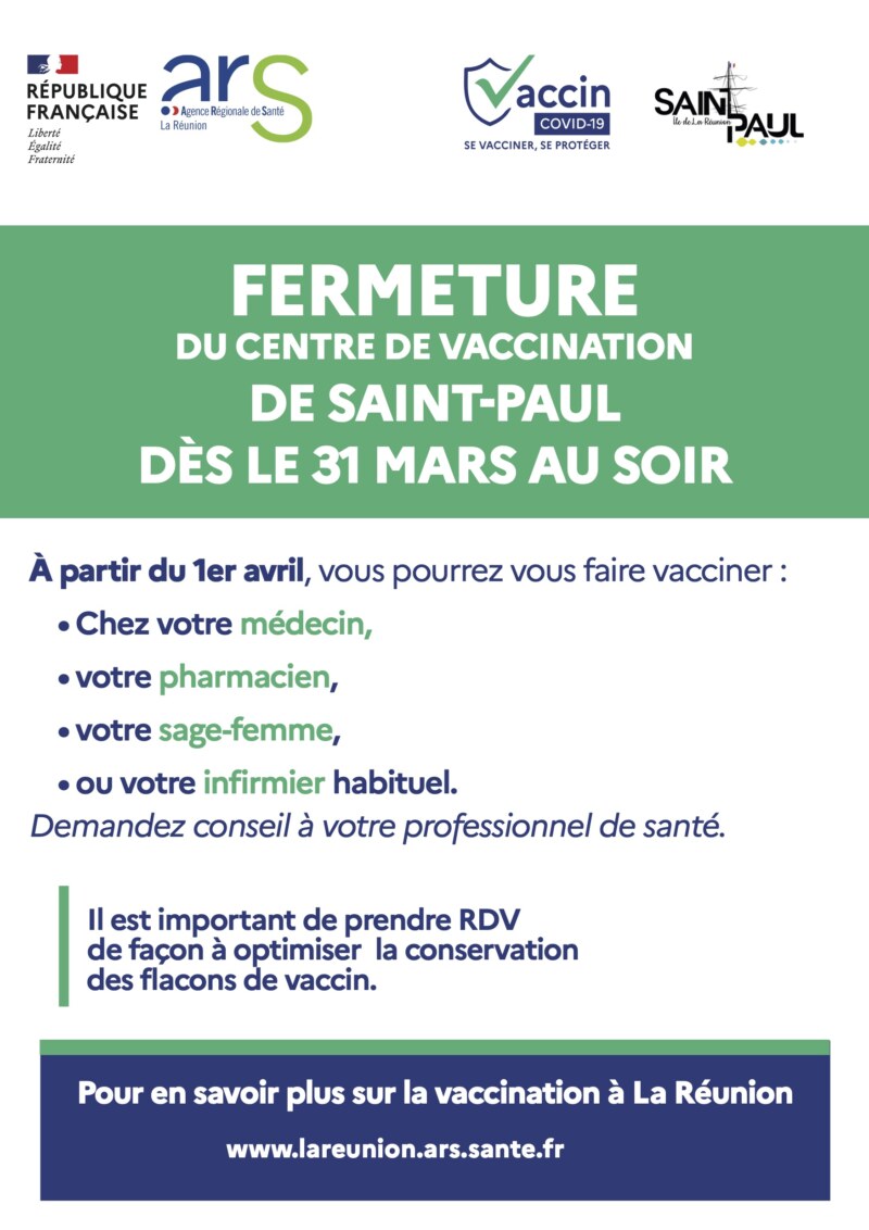 Le centre de vaccination de Saint-Paul va fermer