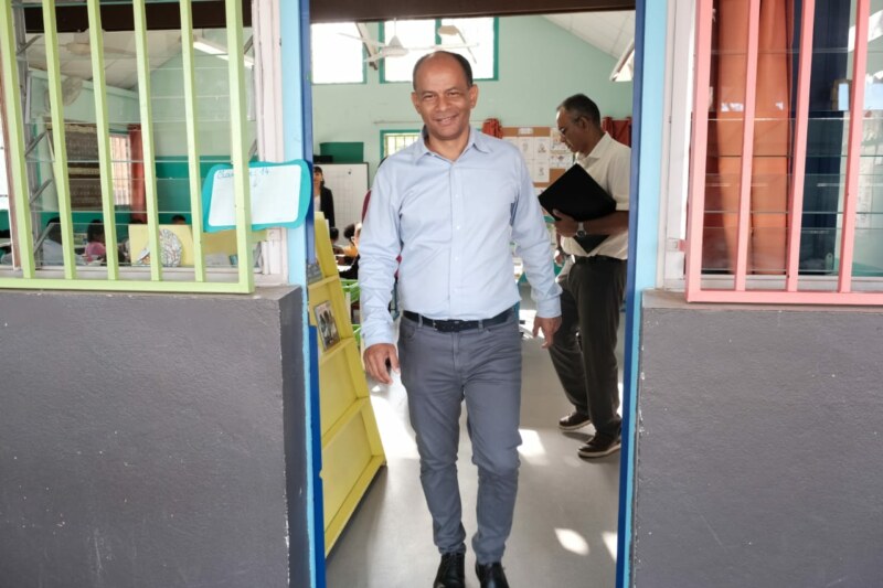 Le Maire de Saint-Paul, Emmanuel Séraphin, visite l’École Blanche Pierson à Plateau Caillou