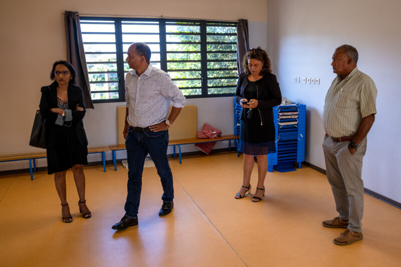 Depuis plusieurs mois, le Maire de Saint-Paul, Emmanuel SÉRAPHIN, a entamé la visite des écoles du territoire. Sur le littoral, comme dans les hauts, il est important de savoir dans quelles conditions sont accueillis les petits écoliers de Saint-Paul. Accompagné de Nila RADAKICHENIN, élue en charge des affaires scolaires, le premier magistrat a visité l’école maternelle de la Ravine Trois-Bassins ce mardi 13 septembre. Une petite école des Hauts qui accueille 35 écoliers.