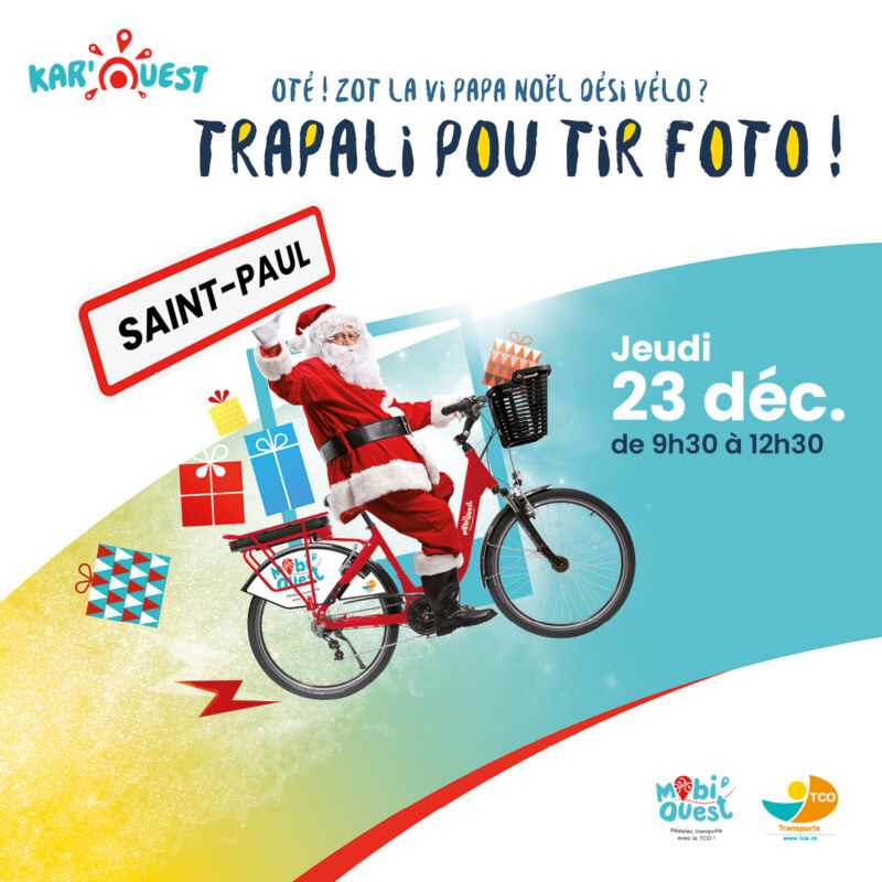 Les Saint-Paulois sont également invités à venir retrouver le Père Noël ce vendredi 24 décembre 2021, à la gare routière de Saint-Paul de 9h30 à 12h30 puis de 14h30 à 17h30. Petits et grands enfants auront le plaisir de découvrir la magie de Noël Kar’Ouest!