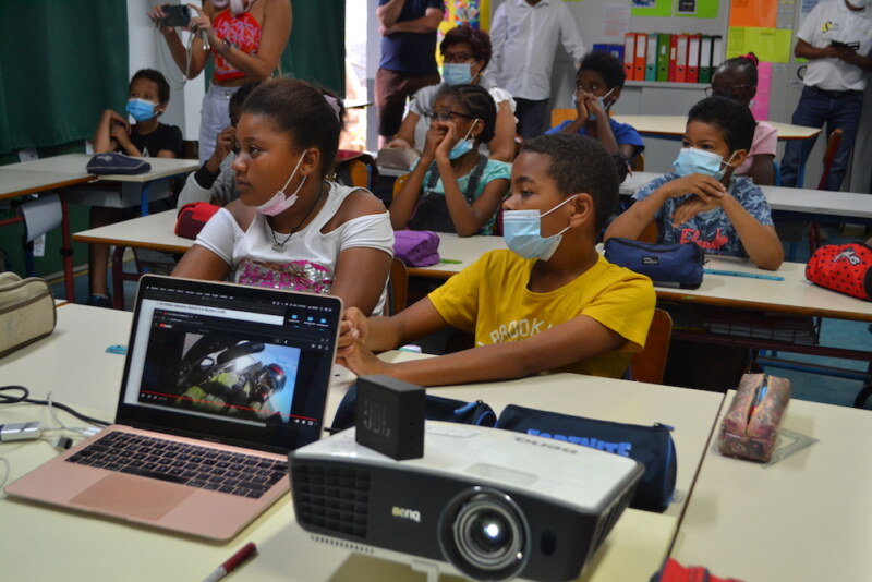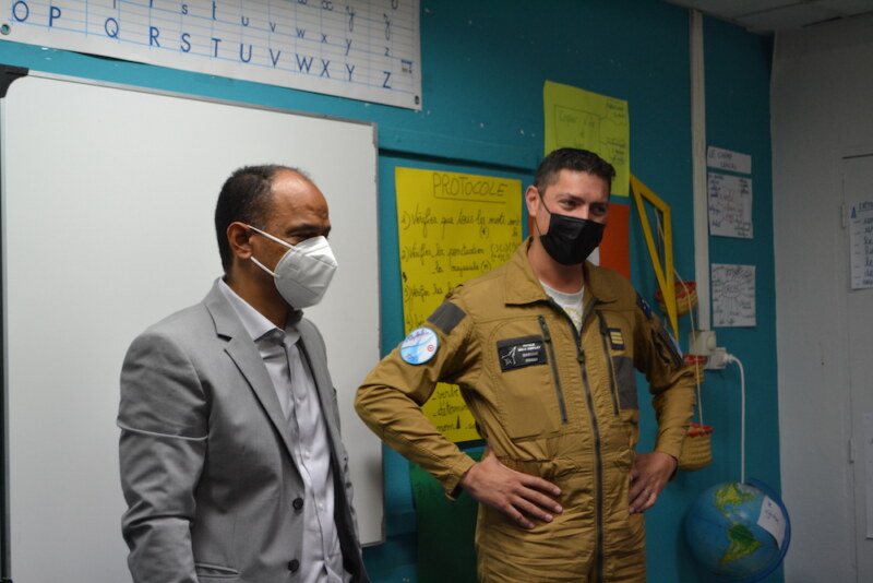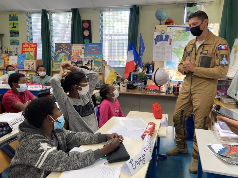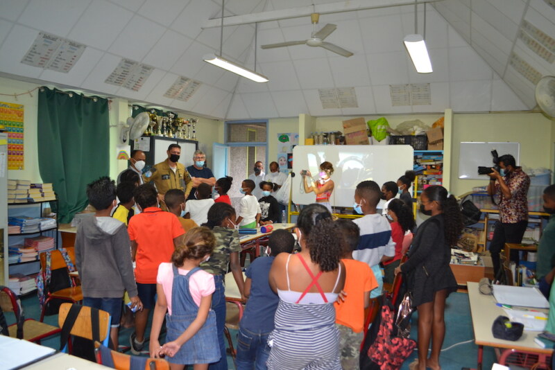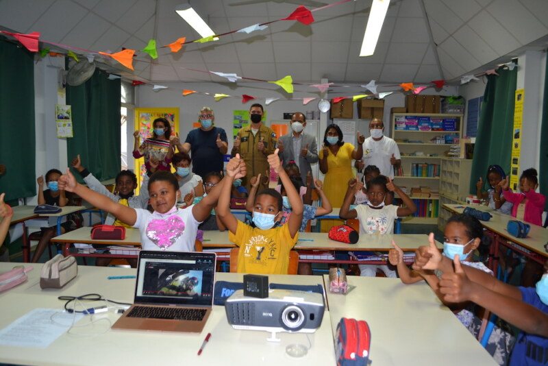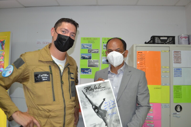 C’est une surprise de taille qui attendait ce jeudi 7 octobre, les élèves de l’école élémentaire Jean-Luc DALY-ERAYA à la Grande Fontaine. Ils ont eu la visite exceptionnelle dans leur classe du pilote de chasse réunionnais Sébastien NATIVEL ! Accompagné du Maire de Saint-Paul, Emmanuel SÉRAPHIN, le Capitaine Sébastien « Babouc » NATIVEL a répondu aux questions en rafale posées par les marmailles.