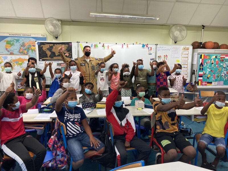 Le pilote de chasse, Sébastien « Babouc » NATIVEL, rencontre les écoliers Saint-Paulois !