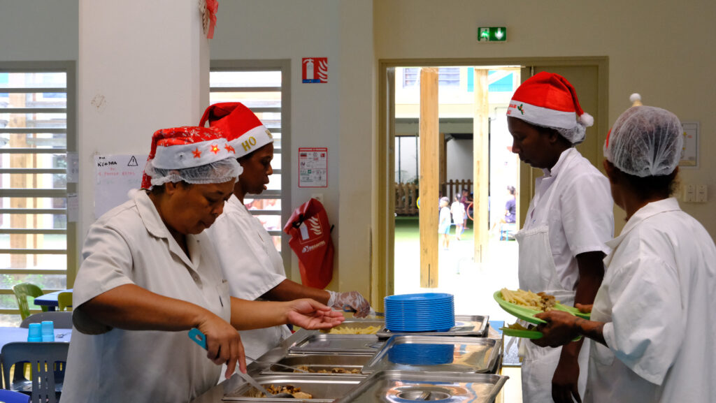 Cette semaine, les écoles de Saint-Paul ont partagé le traditionnel repas de Noël, un moment attendu qui marque le début des festivités au sein des établissements. Les élèves ont pu savourer un menu spécialement préparé pour l’occasion : salade de Noël, dinde rôtie accompagnée d’une crème aux champignons des bois, penne crémeuses et une bûche vanillée en dessert.