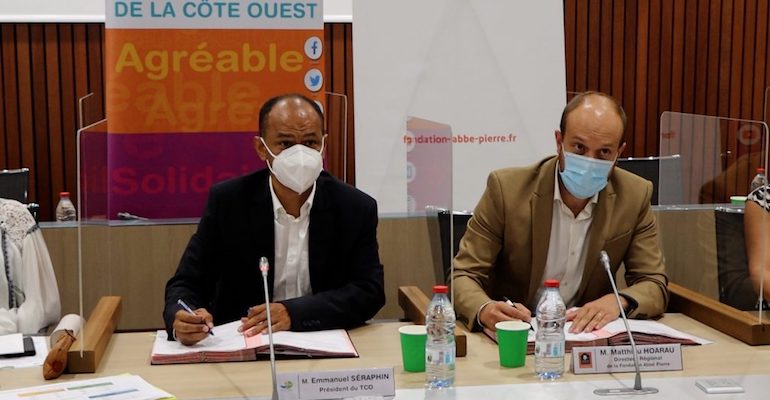 Ce lundi 12 avril 2021, à l’issue du Bureau Communautaire, le président du TCO, Emmanuel Séraphin et le Directeur Régional de la Fondation Abbé Pierre, Matthieu Hoarau, ont signé en présence des maires des 5 communes de l’Ouest, un contrat d’engagement pour agir contre le mal-logement.
