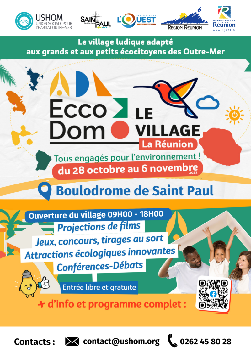 La Ville de Saint-Paul, l’Union Sociale pour l’Habitat Outre-mer (USHOM), le Territoire de l’Ouest, la Région Réunion, et le Département ont le plaisir de vous convier au village Eccodom, qui se tiendra du 28 octobre au 6 novembre au boulodrome, situé sur le front de mer de Saint-Paul.