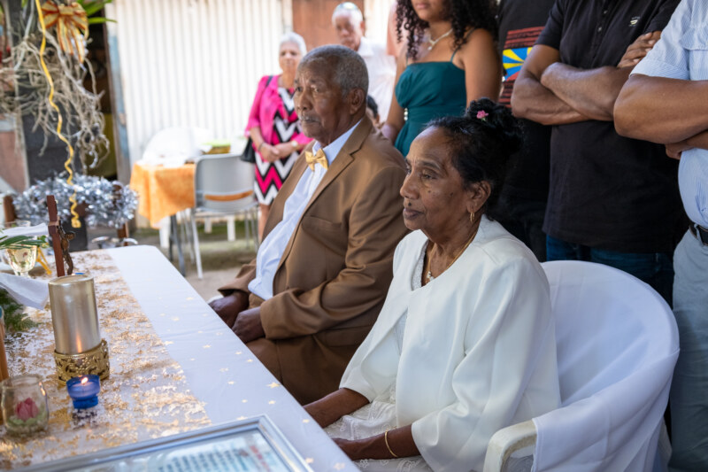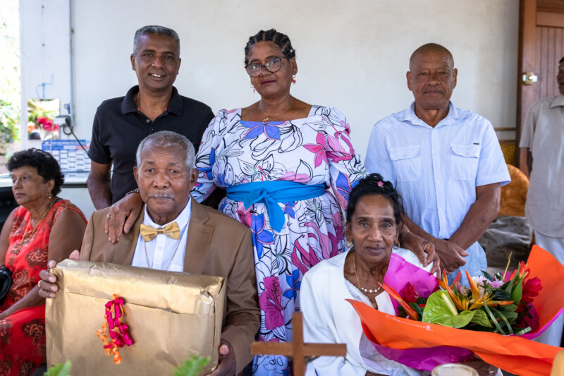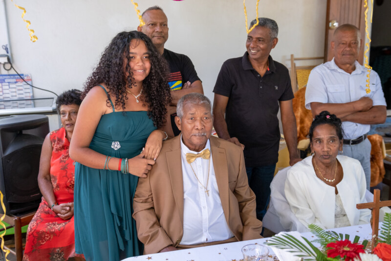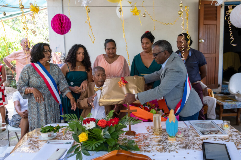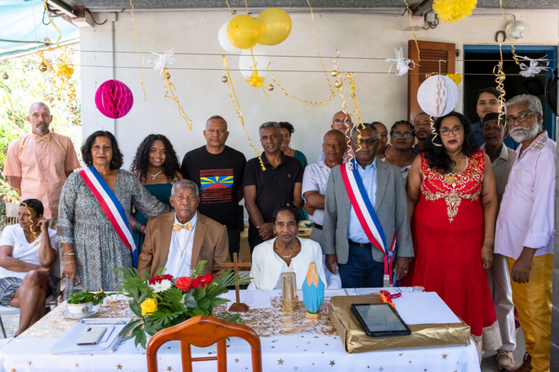 Entourés de leur famille et de leurs proches, les époux VILPONT ont fêté ce lundi 26 décembre 2022 leurs Noces d’or. Lui, ancien chef d’équipe à la SOGEA et elle, femme au foyer, se sont rencontrés au Tampon et se sont mariés à respectivement 20 ans et 19 ans. Originaires de Saint-Gilles-les-Hauts, ils ont accueilli les élus de la Ville : Bernadette MOUNIAMA-CUVELIER et ALEXIS POININ-COULIN, pour fêter ce demi siècle d’amour.