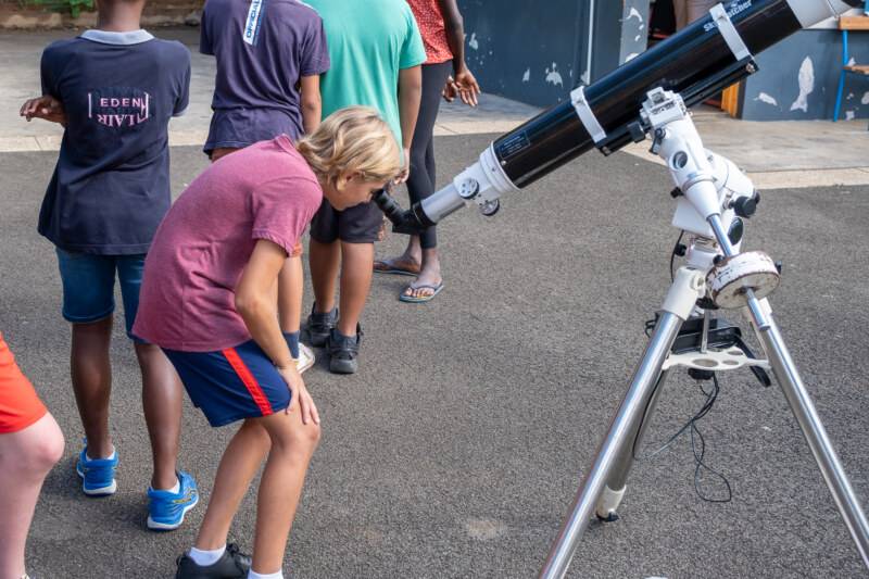 Dans le cadre des “Jours de la Nuit”, opération annuelle menée au mois d’avril par la SEOR (Société d’Etudes Ornithologiques de La Réunion) qui consiste à éteindre les éclairages artificiels afin de protéger nos espèces endémiques impactées par ces derniers, l’association PIKALI en partenariat avec la Ville de Saint-Paul et l’Académie de La Réunion ont animé une série d’ateliers dans les écoles primaires et élémentaires des 6 bassins de vie du territoire : l’école Palmiste au Guillaume, l’école Jasmin ROBERT à Sans Souci, l’école Leconte Delisle à Saint-Gilles-les-Hauts, l’école Aliette HORTENSE à la Saline-les-Hauts, l’école Louise SIARANE à l’Étang et l’école de l’Hermitage-les-Bains à Saint-Gilles… Durant deux heures, les écoliers ont pu observer les astres et poser leurs questions sur notre galaxie et au-delà.