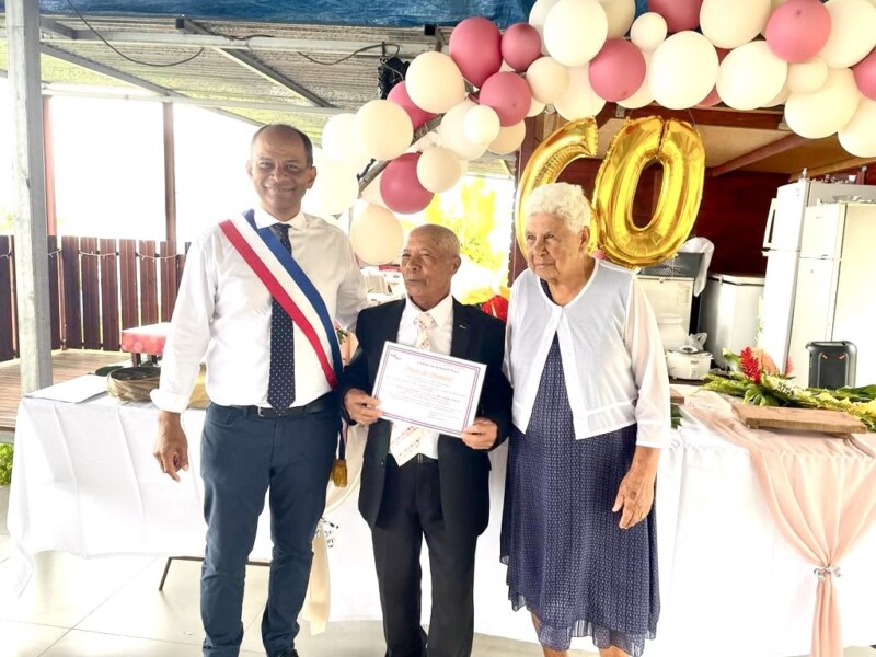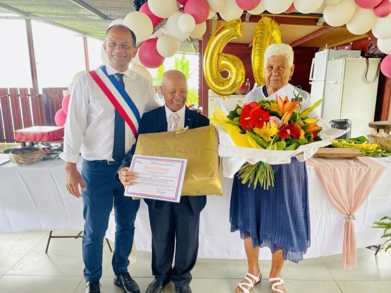 Le 30 décembre dernier, les époux LAURET ont célébré leurs 60 ans de mariage, symbolisés par les noces de diamant. En cette heureuse occasion, le Maire de Saint-Paul, Emmanuel SÉRAPHIN, s’est rendu personnellement chez les époux pour assister à la cérémonie consacrée à leurs 60 ans d’union. La Ville de Saint-Paul tient à adresser ses plus sincères félicitations à ce couple, marquant ainsi six décennies d’amour et de complicité.