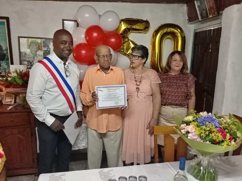 Jean Pierre et Marie Yvonne XITRA ont récemment célébré leurs noces d’or le 27 janvier 2024, marquant ainsi un demi-siècle de vie conjugale. Cet événement empreint de tendresse et de complicité a été honoré de la présence des élus municipaux, Edwige LEBRETON et Julius METANIRE, qui ont partagé ce moment privilégié avec la famille XITRA. Le couple a été profondément touché par l’accueil chaleureux qui leur a été réservé.