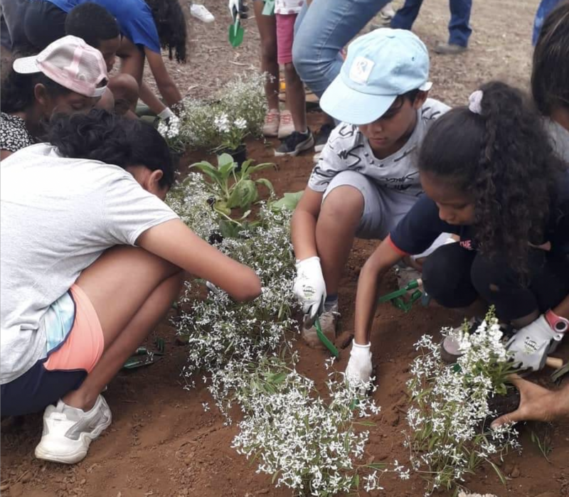 Ce mercredi 28 septembre, une trentaine d’enfants de la garderie «Les petits Boucaniers» se sont rendus à la Réserve Naturelle de l’Etang et sur le site de la Raffinerie pour apprendre les rudiments du jardinage. Des connaissances qu’ils ont mis en pratique dès l’après-midi en travaillant sous la houlette de nos jardiniers municipaux pour créer le jardin de Gandhi. Un espace fleuri formant le drapeau de l’Inde situé sur le front de mer de Saint-Paul.