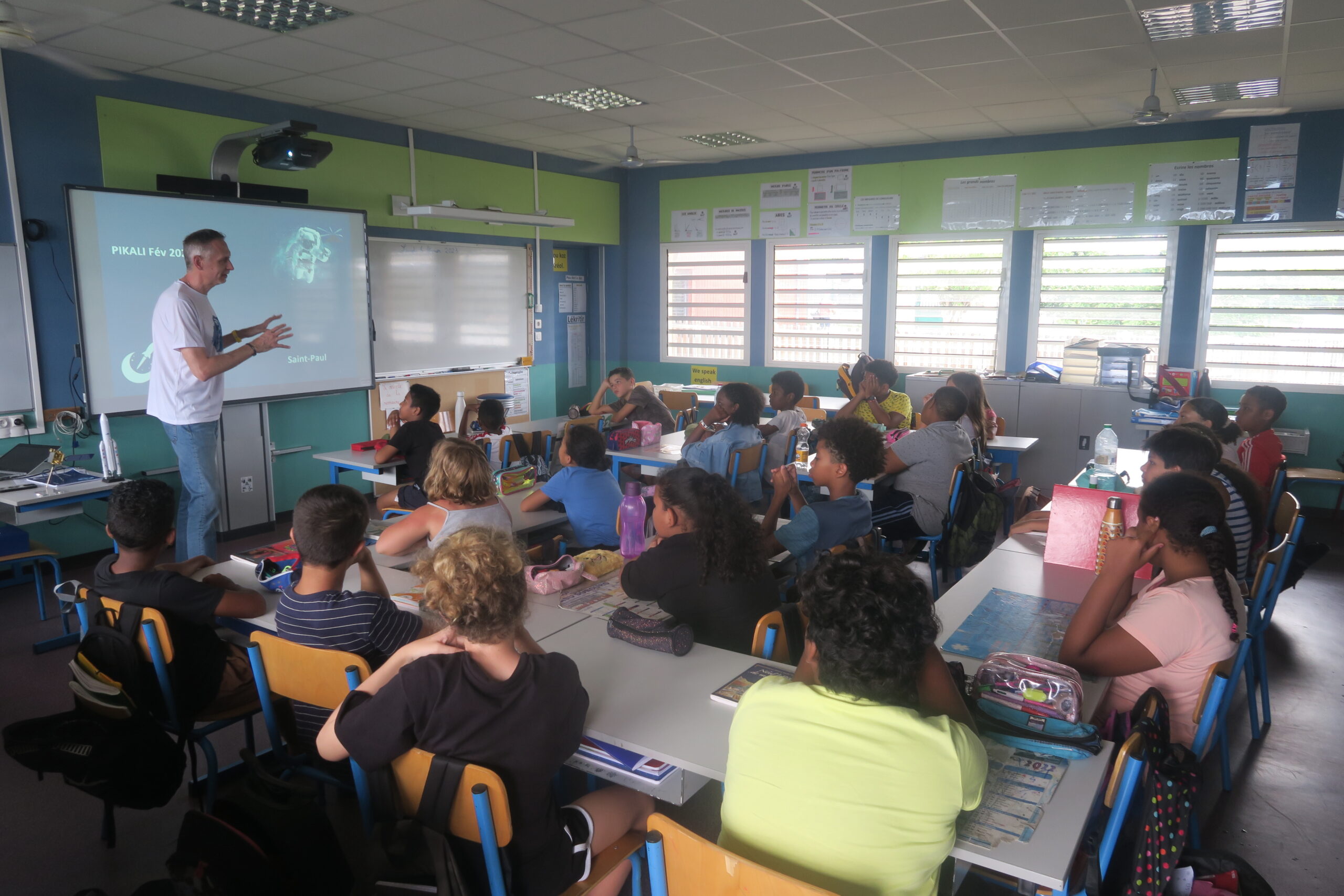 Ainsi, cette semaine, plus de 200 élèves ont bénéficié d’une animation pédagogique sur l’astronautique et l’astronomie prodiguée par Bruno PAYET, Érika VÉLIO et Grégory LAMBERT. Ce dernier, Senior Programme Manager chez Airbus Defence and Space à Toulouse, fait partie de ce réseau d’acteurs au parcours inspirant que l’association PIKALI OI mobilise.