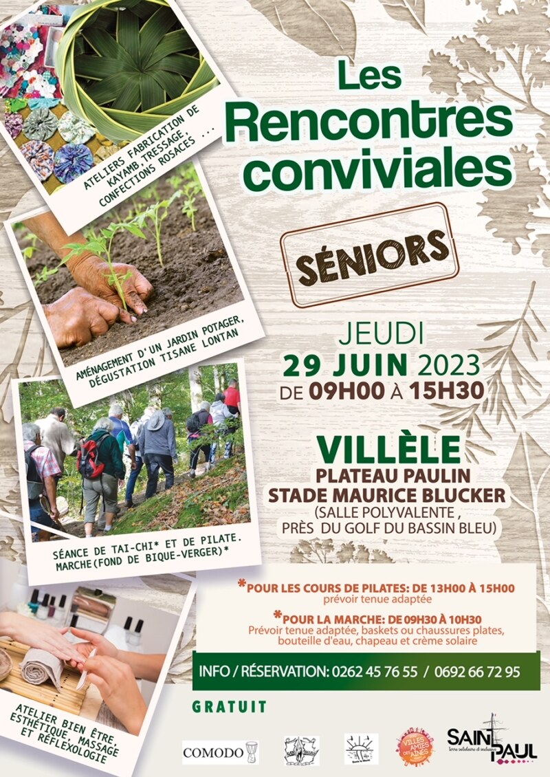Saint-Paul, Ville Amie des Aînés, offre une variété d’activités gratuites pour les plus de 18 000 seniors de la région, tel que démontré par les Rencontres conviviales organisées dans les Bassins de vie. La prochaine rencontre aura lieu le jeudi 29 juin, de 9h à 15h30, au stade Maurice Blucker, sur le plateau Paulin à Villèle.