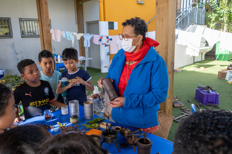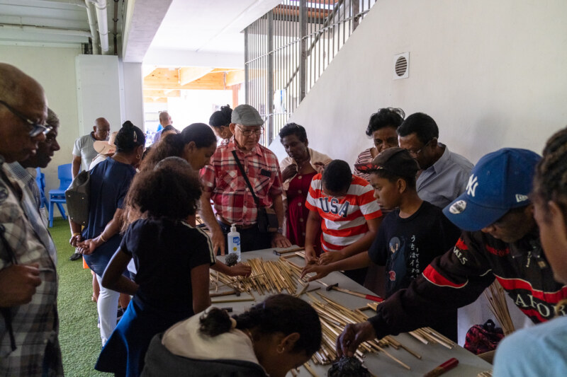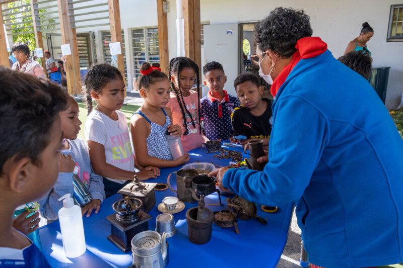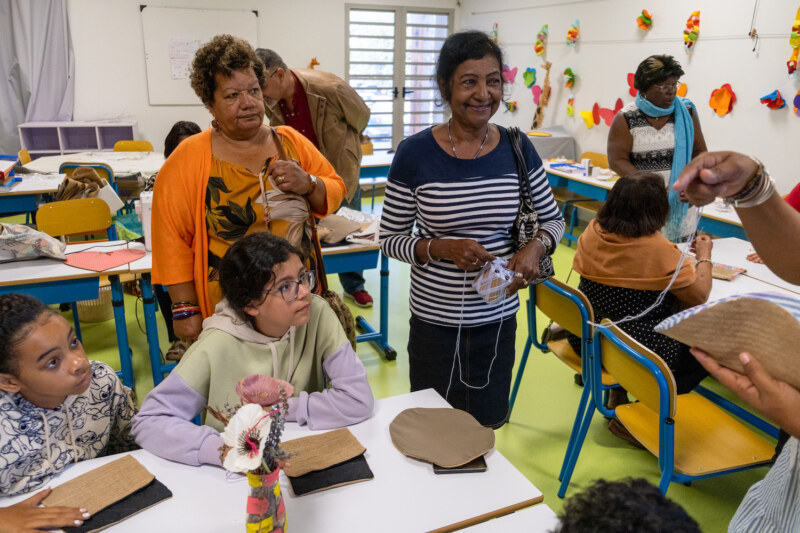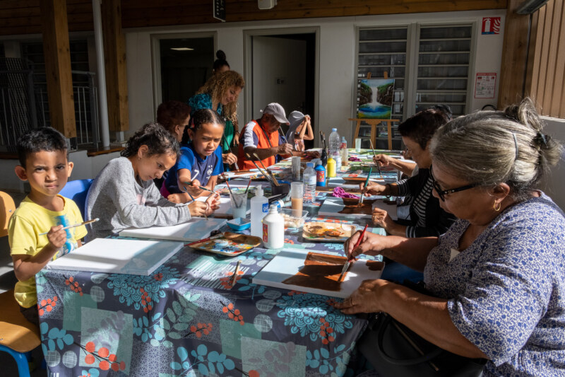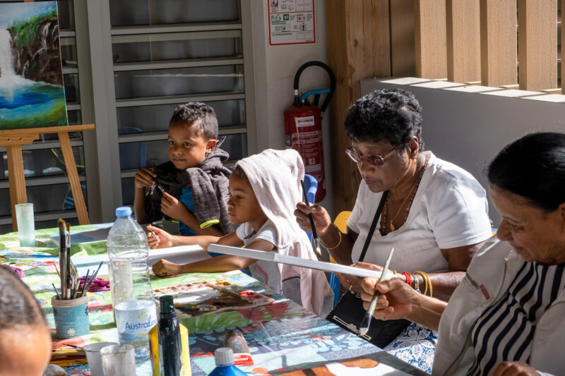 Depuis 8h ce mercredi 27 juillet, les enfants des deux ALSH, l’école maternelle centre et l’école élémentaire Pothier, ont accueilli autour d’un riz chauffé, les 150 gramounes venus spécialement pour partager des moments conviviaux et attendrissants. Les clubs des Jasmins, les Orchidées de L’Ouest, les Pensées d’eau, les Flamboyants, les Manguiers, les Bois de lait, les Bons Amis de la Rue Jacquot, Les Jonquilles… ont répondu présents pour ces rencontres intergénérationnelles inédites. Au programme de ces rencontres fortes en émotions : fabrication de boîte à bijoux, peinture sur tableau sur le thème de La Réunion, confection de sacs fait mains, fabrication de kayamb, séance de sophrologie… Un stand “La Rényion lontan” proposait également des démonstrations et expositions des objets d’antan. De véritables découvertes pour ces marmailles et un retour dans le passé pour ces gramounes qui n’ont pas hésité à transmettre leur savoir, raconter leurs souvenirs à cette jeune génération toute ouïe.
