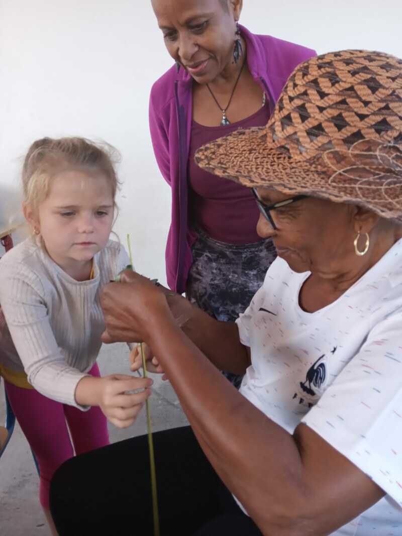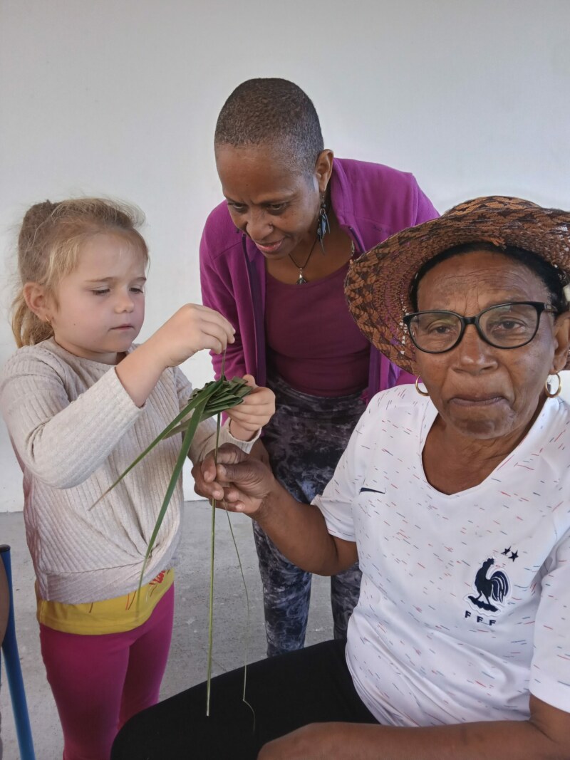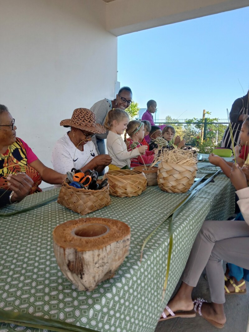 Entre les marmays des associations périscolaires et les seniors des différents clubs de 3ème jeunesse, la flamme ne s’est jamais éteinte. En effet, lors de cette rencontre, ils se sont tous pris au jeu des nombreux ateliers proposés. Parmi les animations : un atelier de confection d’objets à base de feuilles de cocotiers pour transformer la matière première en objets décoratifs. Cette rencontre a permis une entraide les participants : les enfants ont travaillé leur adresse et les gramounes, leur mobilité.