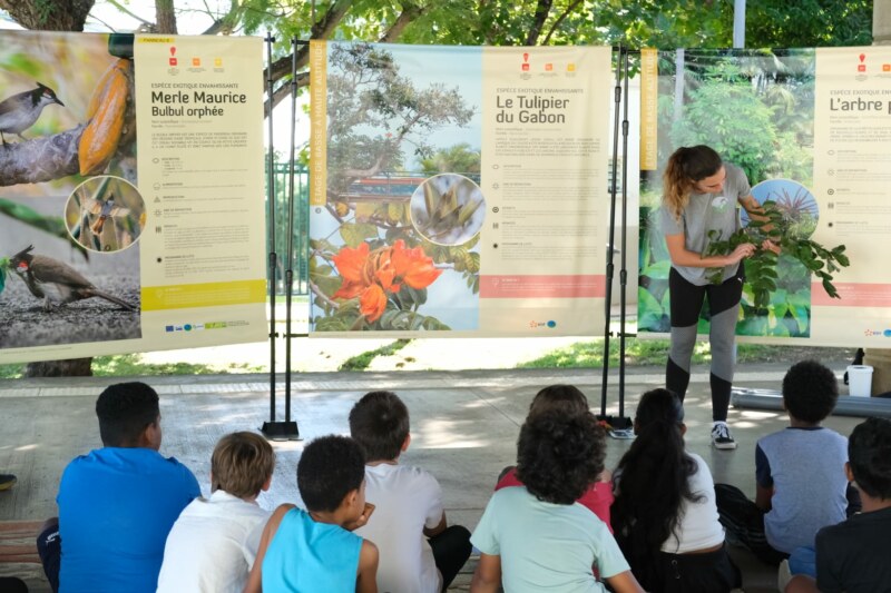 Cet arbre, faisant partie des 100 espèces les plus envahissantes dans le Monde (UICN), représente une forte menace pour notre biodiversité. De plus, c’est un arbre « fragile » qui résiste mal aux intempéries comme les cyclones et peut occasionner de gros dégâts lors de sa chute. Ses racines peuvent également endommager les infrastructures, les canalisations et les voiries, etc. C’est la sixième école qui bénéficie de cette journée de sensibilisation sur la biodiversité réunionnaise. Ces sessions d’informations vivantes et interactives permettent d’aiguiser l’intérêt des enfants. Cette intervention entre dans la grande opération de sensibilisation et d’accompagnement de la population à la lutte contre le Tulipier du Gabon qui est actuellement menée à Saint-Paul.
