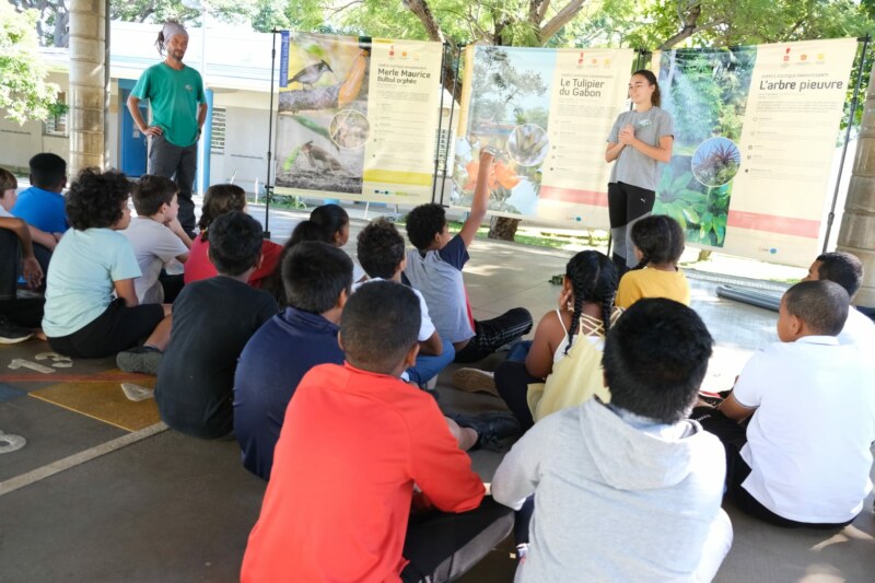 Ce jeudi 4 Mai à l’école élémentaire Fleurimont II, s’est déroulé un atelier de sensibilisation sur les espèces invasives à La Réunion. C’est en compagnie de l’association AVE2M (Association pour la Valorisation de l’Entre Deux Monde) que les enfants ont appris à reconnaître des espèces exotiques envahissantes comme le Tulipier du Gabon, le Merle Maurice et aussi l’Arbre à Pieuvre. Un tulipier du Gabon est aussi présent dans l’enceinte de l’école et sera abattu pendant les prochaines vacances scolaires de Mai. Il était donc important d’expliquer aux enfants la raison de cet abattage. L’arbre sera remplacé par une espèce indigène ou endémique.