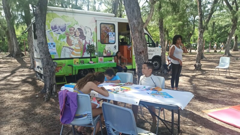 Place à l’art grâce aux vacances du Médiabus ! Ce jeudi 17 mars de 10h à 12h, les marmailles ont été attentifs aux conseils de l’artiste Frédéric MARTIN pour cette initiation à l’art du dessin sous l’eau. Ce vendredi 18 mars de 9h30 à 11h30, un atelier “Randonnée croquis” sera proposé aux marmailles avec Frédéric MARTIN. Il s’agit d’une balade sous les filaos tout en dessinant dans votre carnet à croquis.