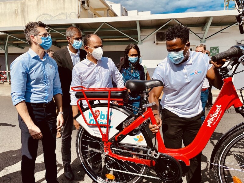 À l’occasion de la Semaine Européenne de la Mobilité qui se déroule du 16 au 22 septembre 2021, Kar’Ouest présente Mobi’Ouest, le nouveau service de location de VAE (Vélos à Assistance Électrique) longue durée pour tous les habitants du TCO ! Une offre intégrée et complémentaire au réseau de bus Kar’Ouest pour développer les mobilités douces sur le territoire. Une agence dédiée à la location de ces vélos a été inaugurée le jeudi 16 septembre à la gare routière de Saint-Paul. La découverte de cette nouvelle structure s’est faite en présence du Maire de Saint-Paul et Président du TCO, Emmanuel SÉRAPHIN, des élus communautaires et élus à la mairie de Saint-Paul, Irchad OMARJEE, Mélissa COUSIN, Alexis POININ-COULIN, Bernadette MOUNIAMA-CUVELIER, Perceval GAILLARD, Michel CLÉMENTE ainsi que des administratifs qui seront en charge de la gestion de l’équipement et de la location des VAE.