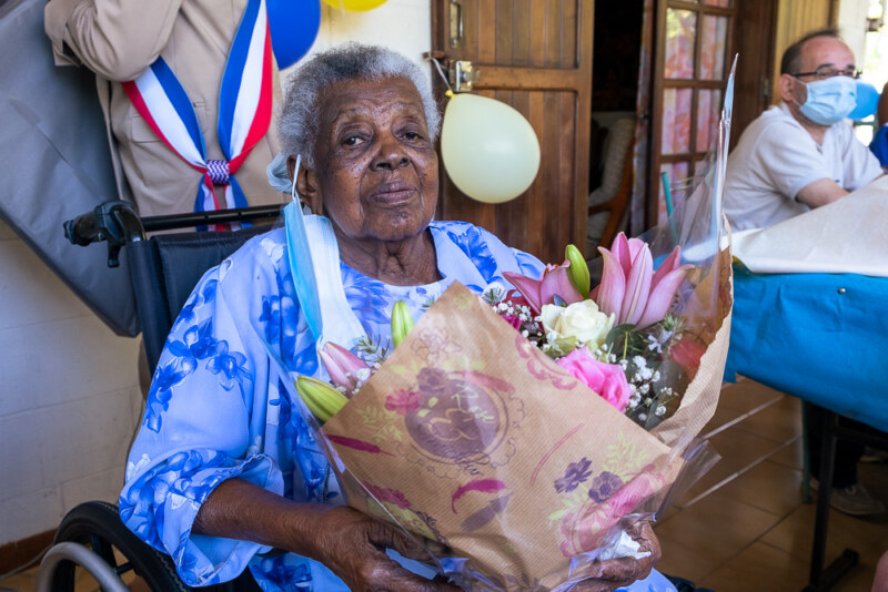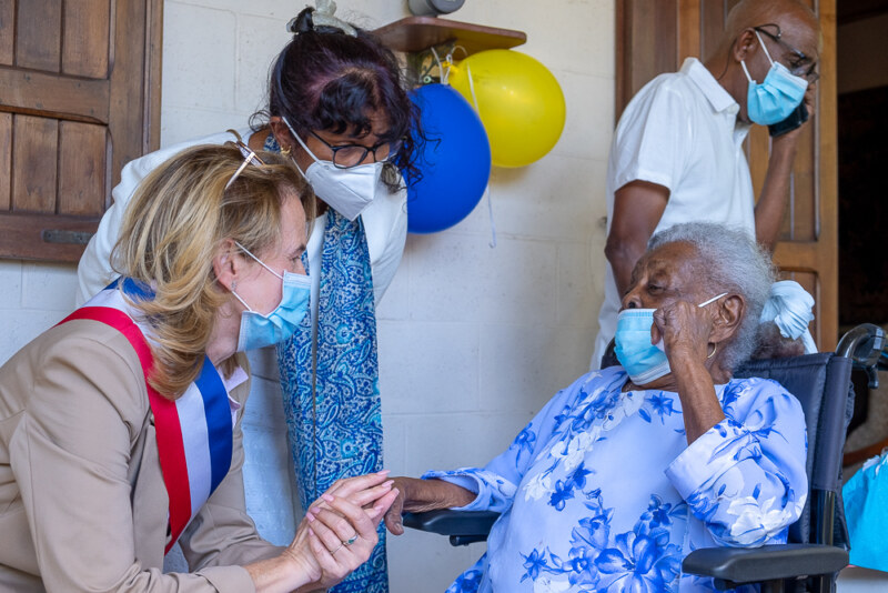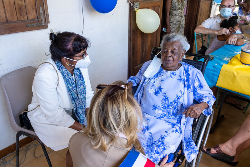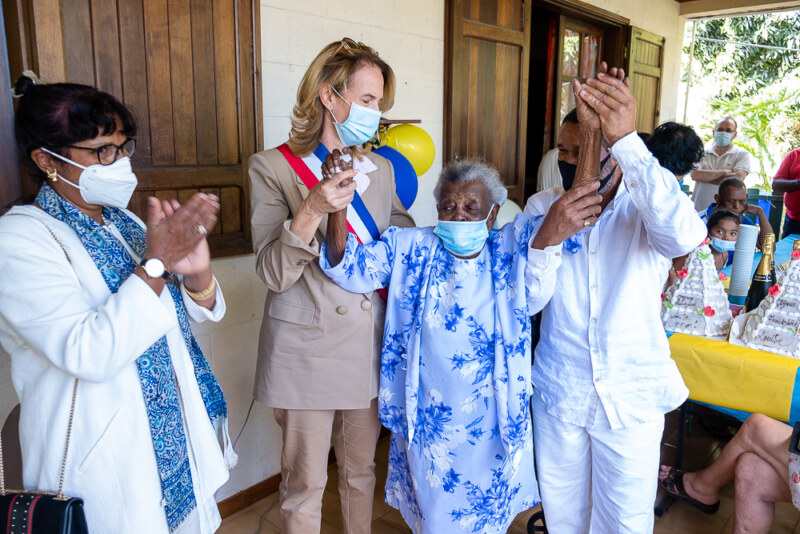 Ce dimanche 19 septembre, Louise LANGEVILLIERS a soufflé ses 100 bougies en présence de sa famille et de ses amis. Accompagnée des élues, Céline CHAROLAIS et Jacqueline CARPIN, la centenaire était radieuse pour célébrer cette journée particulière. Ancienne cantinière dans une école du Port, Louise LANGEVILLIERS a vécu longtemps en métropole, une quinzaine d’années. Son fils unique se confie : “Maman a vécu au Port, puis à Saint-Paul après un long séjour en métropole où elle s’est remariée après son veuvage. Cela fait plus de 20 ans qu’elle vit maintenant ici, à Cambaie”. Née à Saint-Paul, plus précisément à Saint-Gilles-les-Hauts, Louise LANGEVILLIERS a été concierge en métropole avant de revenir sur sa terre natale. “Je suis née le jour de la Fête de la Salette, j’ai grandi à Saint-Gilles-les-hauts et j’ai été à l’école à Saint-Paul” se souvient la gramoune.