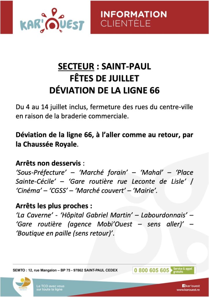 Le réseau Kar’ouest communique sur la ligne 66, déviée à l’aller comme au retour par la Chaussée Royale. Plus d’informations sur le site de Kar’ouest.
