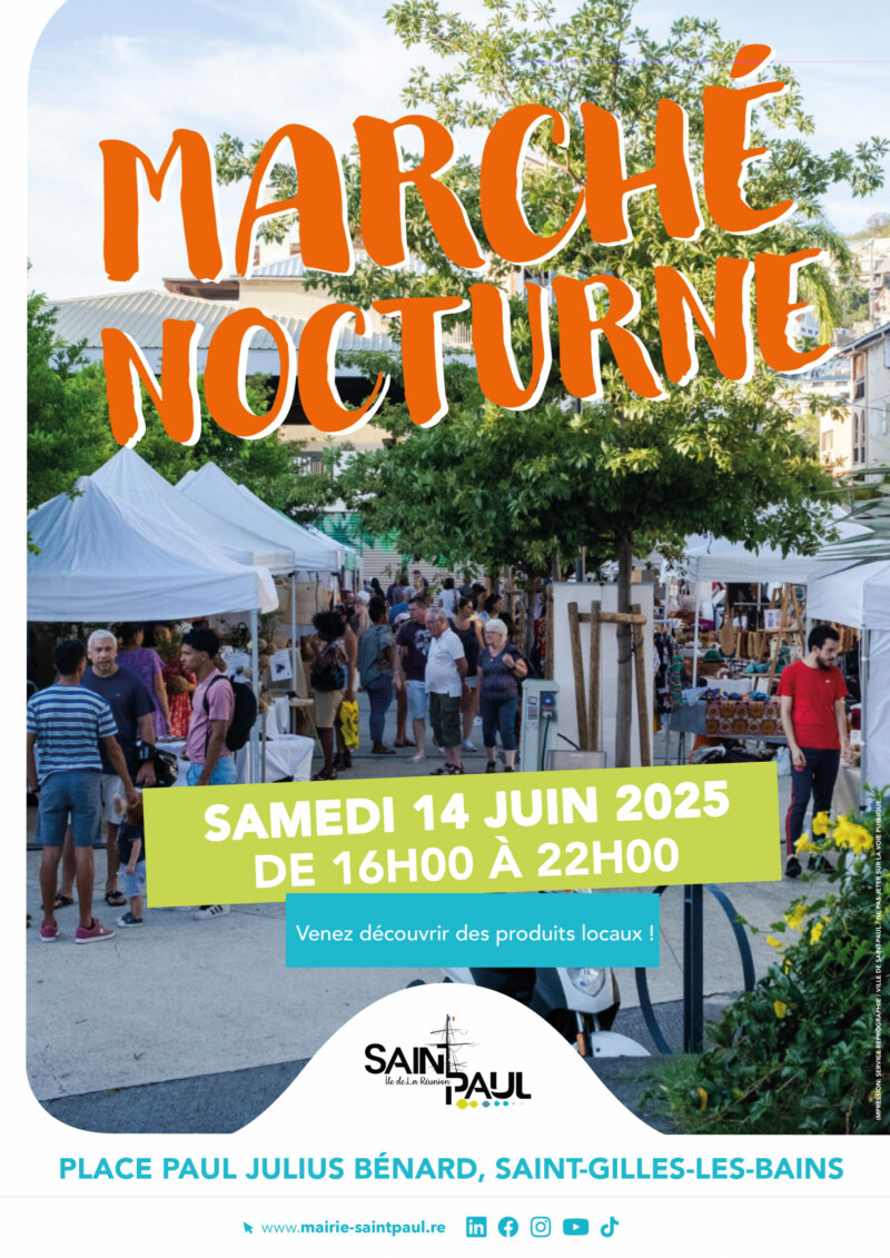 La Ville de Saint-Paul vous donne rendez-vous pour une nouvelle édition de son Marché Nocturne, le samedi 14 juin 2025, de 16h à 22h, sur la Place Paul Julius Bénard à Saint-Gilles-les-Bains.