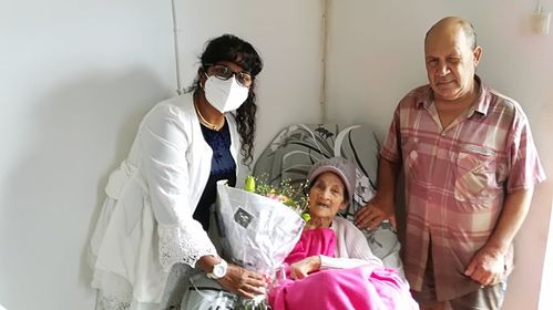 C’est sous le regard de la famille NIRLO que l’élue, Jacqueline CARPIN, offre un présent et un bouquet de fleurs haut en couleur, à la centenaire scintillante de bonheur. Pour cette même occasion, son fils lui livre une chanson qui vient du cœur, c’est une belle journée remplie d’émotion pour la Saint-Pauloise.