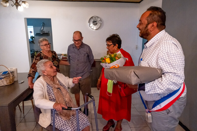 Lors de la visite de ses centenaires, la Ville de Saint-Paul vous donne des nouvelles de HOARAU Marie Marcelle, habitante de Bois-de-Nèfles qui a soufflé ses 100 bougies le 12 mars dernier.