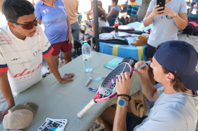 Le dimanche 9 juillet, de 9h00 à 12h00, Nicolas GIANOTTI, le champion du monde français de Beach tennis en double, a célébré son titre de champion du monde et sa position de numéro 1 mondial ITF. L’événement a eu lieu sur la plage des Brisants, lieu où se déroule l’Open international des Brisants organisé par Bourbon Brisants Beachtennis 3B. En l’honneur de sa présence, de nombreux passionnés de beach tennis ont fait le déplacement, y compris Virginie SALLÉ, élue du bassin de vie de Saint-Gilles. Après avoir échangé quelques balles, une séance d’autographes était prévue en fin de matinée pour les jeunes participants.
