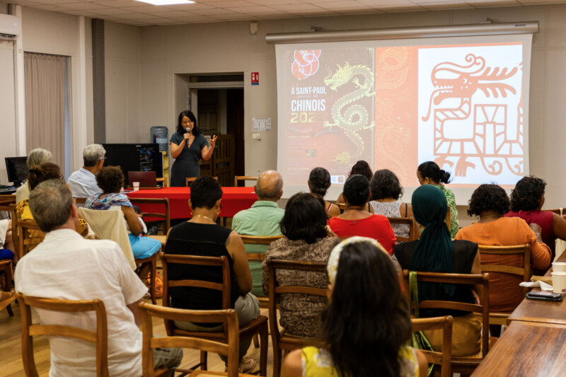 Les festivités du Nouvel An Chinois se poursuivent à Saint-Paul. Ce jeudi 15 février, dans la salle du conseil municipal, s’est tenue la conférence d’Aline KWAN, directrice des partenariats et des activités culturelles de l’Institut Confucius de la Réunion. Le public, les invités et les élu·es présents ont pu découvrir l’histoire du “Céleste, puissant et bienveillant : à la rencontre du dragon chinois”.