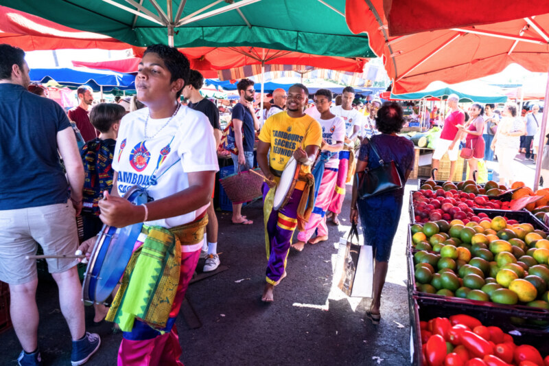 Si vous étiez au marché forain de Saint-Paul ce samedi 15 avril, vous avez certainement croisé et entendu les Tambours sacrés. Les tambours sacrés indiens sont un élément central des célébrations du nouvel an tamoul. Les sons des tambours sacrés résonnent dans toute la communauté tamoule, invitant les gens à se joindre aux célébrations et à se rassembler pour commencer la nouvelle année avec joie et bonne humeur.
