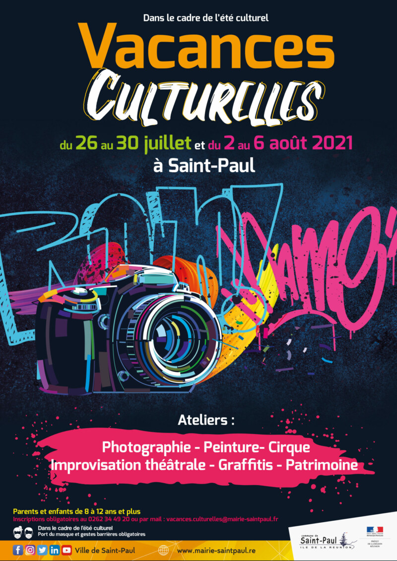 Apprendre la photographie, l’improvisation théâtrale, la peinture, le cirque, le graf… Voici le programme de la nouvelle opération Vacances Culturelles, organisée à Saint-Paul, du 26 juillet au 6 août 2021.
