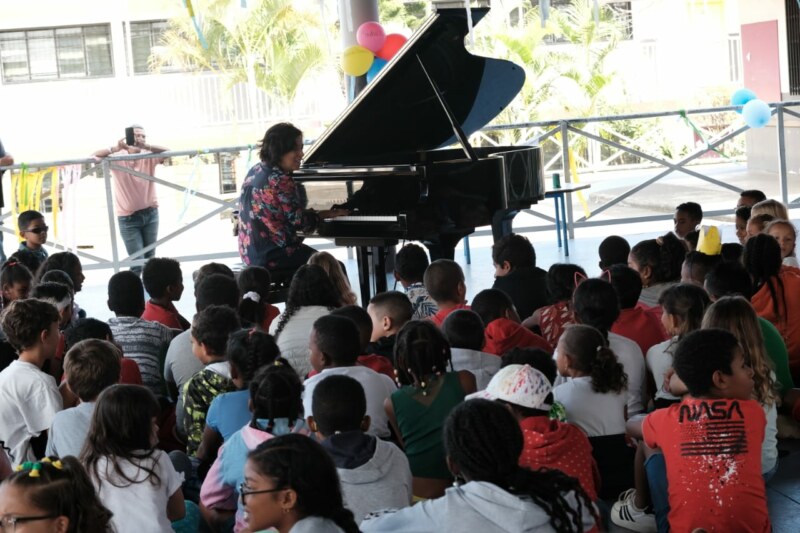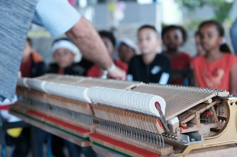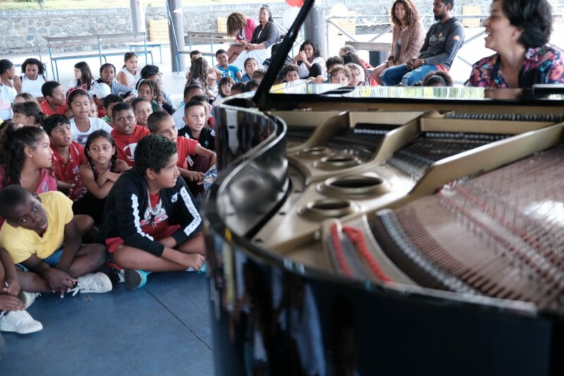 Ce vendredi 4 août, Opus Pocus s’est invité au centre de loisirs. Valérie Chane TEF, pianiste, et Martial PONS, accordeur réparateur de pianos, sont allés à la rencontre des enfants de l’accueil de loisirs Aliette HORTENSE à la Saline les Hauts.