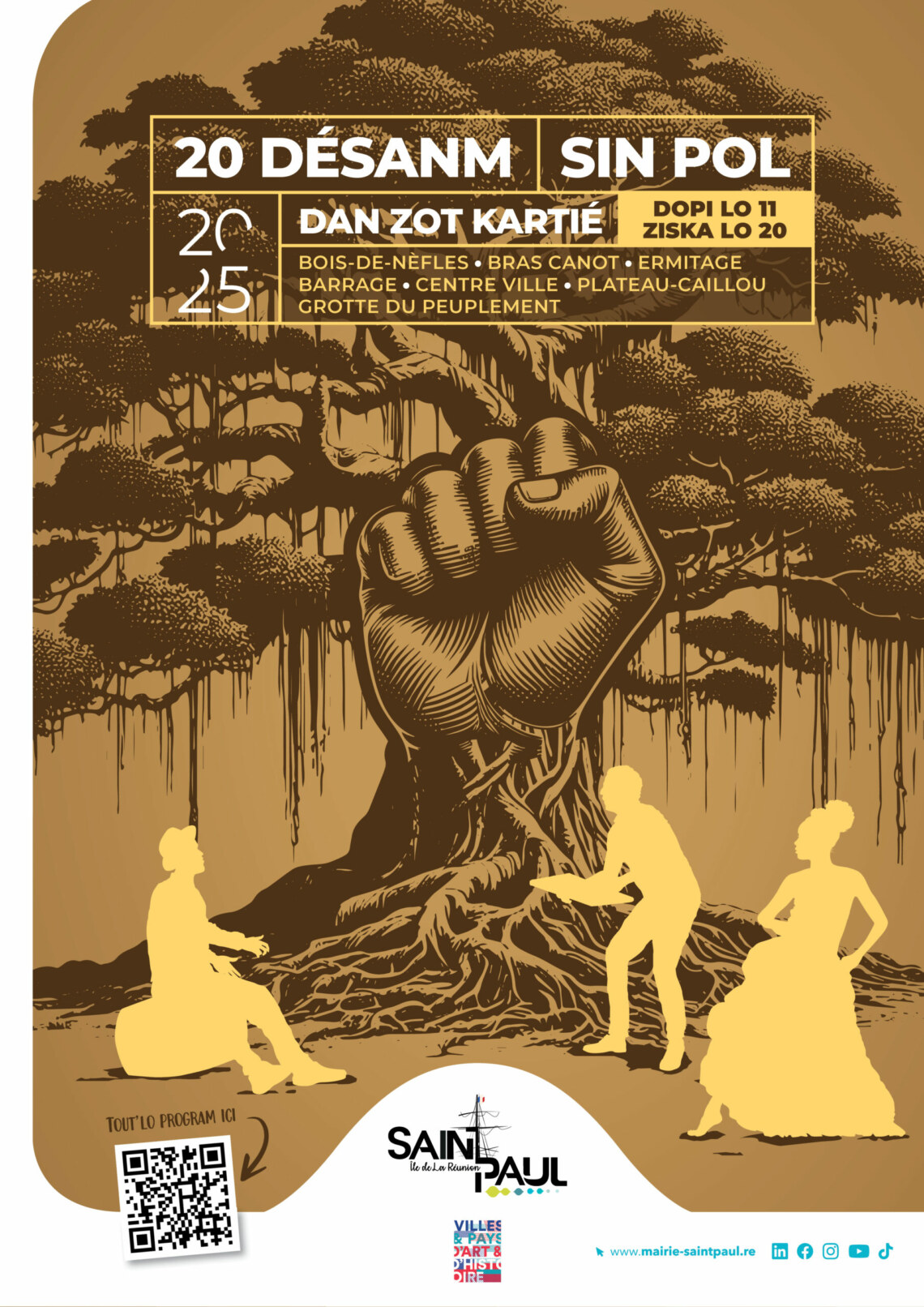 Du 11 au 20 décembre, venez célébrer le 20 Désanm au cœur de vos quartiers ! Concerts, danses, ateliers pour enfants, expositions et moments de partage vous feront vibrer au rythme de la musique et de la mémoire. Une belle occasion de se retrouver en famille, entre amis ou entre collègues pour découvrir le patrimoine réunionnais et vivre la fête ensemble. 👉 Retrouvez le programme complet ci-dessous.