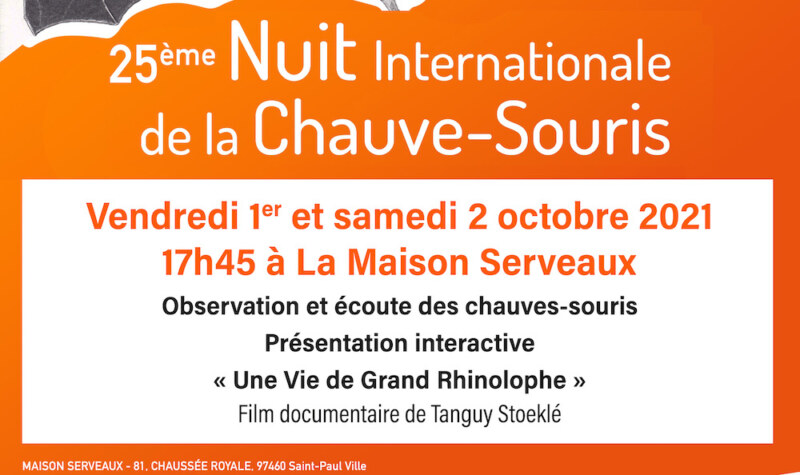Vous êtes passionnés des chiroptères? Dans le cadre de la 25ème Nuit Internationale de la Chauve-Souris, des animations se dérouleront ce vendredi 1er et ce samedi 2 octobre 2021 dont deux visites guidées pour le public à la Maison Serveaux (81, Chaussée Royale 97460 Saint-Paul). En effet, ce bâtiment communal abrite une colonie de chauve-souris et les objectifs de ces visites sont multiples : sensibiliser le public à la préservation de cette espèce endémique, les informer sur leur inoffensivité et montrer que l’humain et le “petit molosse ” peuvent cohabiter dans un même espace.
