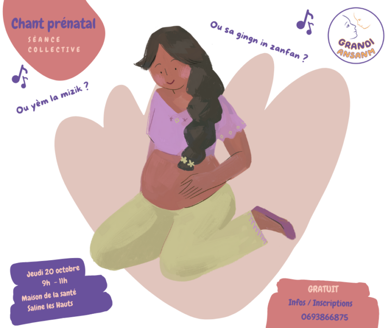 Marion Sanchez, de Sensa’Son, musicienne et animatrice d’ateliers de chant prénatal vous propose une séance de chant prénatal. Vous attendez un bébé ? Venez utiliser votre voix pour améliorer votre bien-être physique, mental et émotionnel, ressentir les vibrations et résonances du son et offrir à bébé un massage vibrant, découvrir le tambour océan et vivre l’apaisement que cela procure. Pas besoin d’être expert en chant, Marion Sanchez vous accompagne avec des vocalises, voyelles, chansons diverses et berceuses, l’important est de se faire du bien et de faire du bien à bébé.