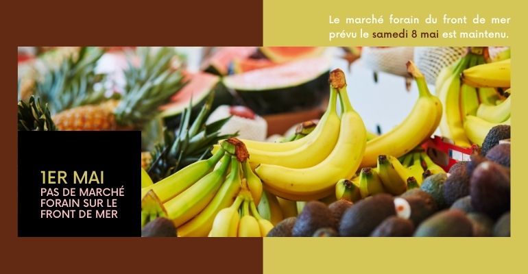 Le samedi 1er mai, le marché forain du front de mer n’aura pas lieu en raison du jour férié lié à la fête du Travail. Le marché forain du front de mer prévu le samedi 8 mai reste, quant à lui, maintenu aux horaires habituels. Les forains et les clients doivent impérativement respecter les mesures de sécurité renforcées : les règles de distanciation sociale, le port du masque et les gestes barrières. Ces règles visent à empêcher un maximum la propagation de la Covid-19.