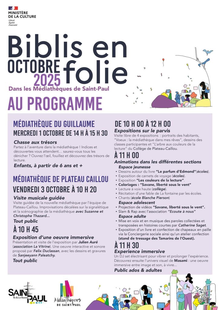 Les médiathèques de Saint-Paul s’animent pour l’édition 2025 de Biblis en Folie ! Pendant deux jours, petits et grands sont invités à plonger dans un univers culturel, ludique et créatif, à partager en famille ou entre amis.