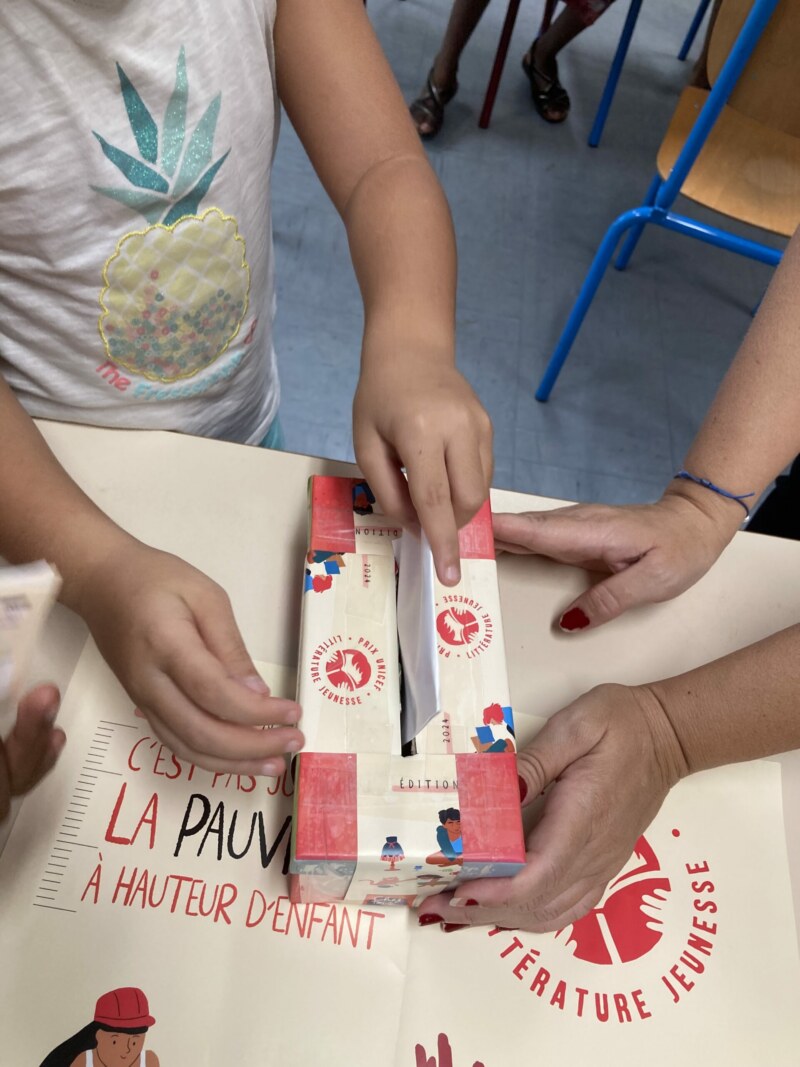 De novembre 2023 à février 2024, les intervenantes ont présenté et fait lire chaque album, puis ont laissé les enfants s’exprimer sur cette thématique. Ces ateliers ont permis de mettre en avant les différentes privations vécues par les enfants et les causes/conséquences des inégalités d’accès aux ressources essentielles dont les enfants ont besoin pour vivre et bien grandir. C’était, par ailleurs une invitation sous forme de débat à réfléchir comment agir pour un monde plus équitable, en luttant contre la stigmatisation.