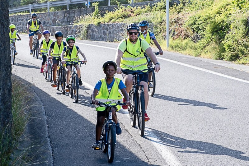 Équipés de casques, de gilets de sécurité et de vélos, les enfants sont confrontées à la réalité du terrain en roulant dans des conditions de circulation normales.