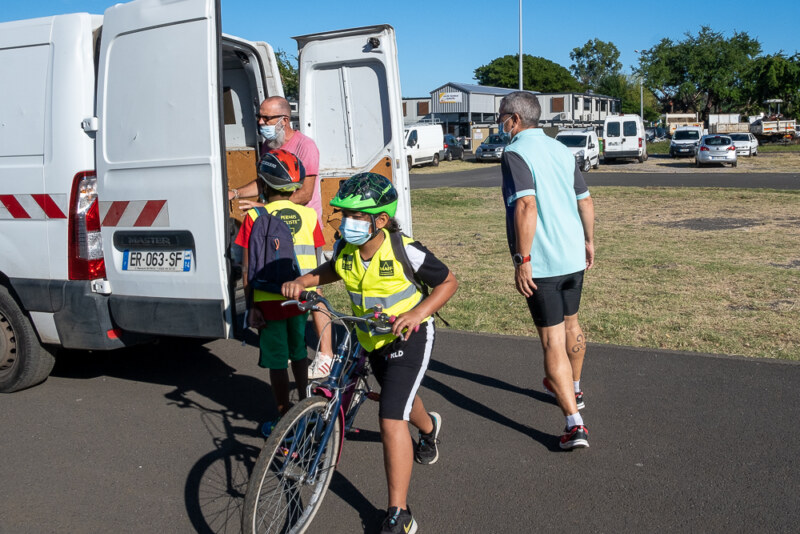 Dans le cadre du contexte sanitaire actuel, le P’tit Tour à vélo s’articule en trois journées distinctes pour chaque école. L’Adjointe déléguée aux affaires scolaires, Nila RADAKICHENIN, accompagnée du délégué de l’association de l’USEP Zone nord-ouest, Alain DESCORSIER et d’Alexandra BOUCHEREAU, organisatrice du P’tit tour à vélo et enseignante de CP se sont mobilisés pour assurer le bon déroulement de l’opération P’tit Tour à vélo. Tous partenaires de l’association de l’USEP, les écoles sont aidées de parents d’élèves volontaires pour encadrer les enfants, en complément de la mairie de Saint-Paul qui intervient de manière volontaire dans cette action, en assurant la logistique de l’opération, ainsi que l’apport de vélo d’appoint en cas de soucis techniques.