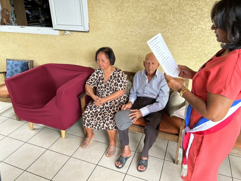 Leur histoire d’amour a commencé il y a plus d’un demi-siècle. À cette époque là, point de smartphone. Pourtant, cela n’a pas empêché Raphaël CAMATCHY d’envoyer sa demande en mariage à Rufine. Ils se sont mariés le 06 janvier 1959. Depuis, leur amour a perduré et a donné naissance à 7 enfants, 16 petits-enfants et 16 arrière-petits-enfants. On leur souhaite encore de belles années de bonheur et rendez-vous dans 5 ans pour célébrer leurs noces de platine.