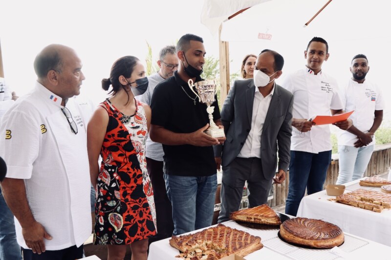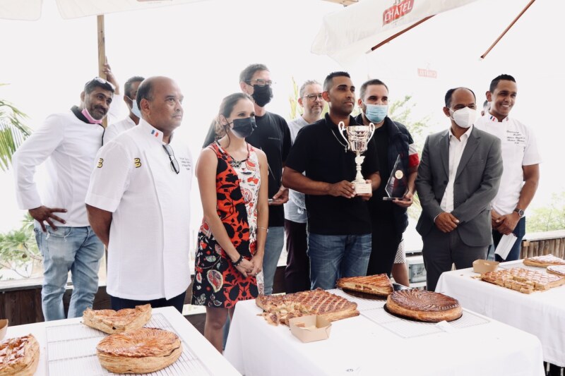 Le restaurant le Choka Bleu, à la Saline Les Bains, accueillait le jeudi 9 décembre une délégation d’artisans boulangers et pâtissiers ainsi que des officiels et personnalités pour une cérémonie particulière. Une remise des prix de la première édition du concours de la meilleure galette des rois à La Réunion a été organisée en présence des boulangers et pâtissiers ayant participé au concours, du Maire de la Ville, Emmanuel SÉRAPHIN, de la Députée Karine LEBON et notamment de deux artisans de renom en la présence de Norbert TACOUN et de Laurent ENCATASSAMY. À l’issue des délibérations, c’est finalement la galette de Jean-Loïc GARRIOS, du “Dream Cake” qui décroche le titre. Notons également les performances de François LECLERC de “O Délices du Paradis” et de Thomas DUDUC, du “Chocomande”, qui décrochent respectivement la deuxième et troisième place.