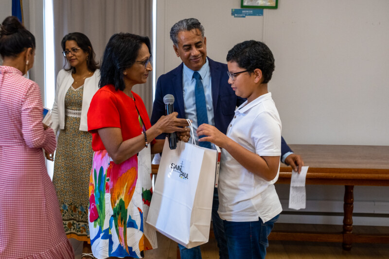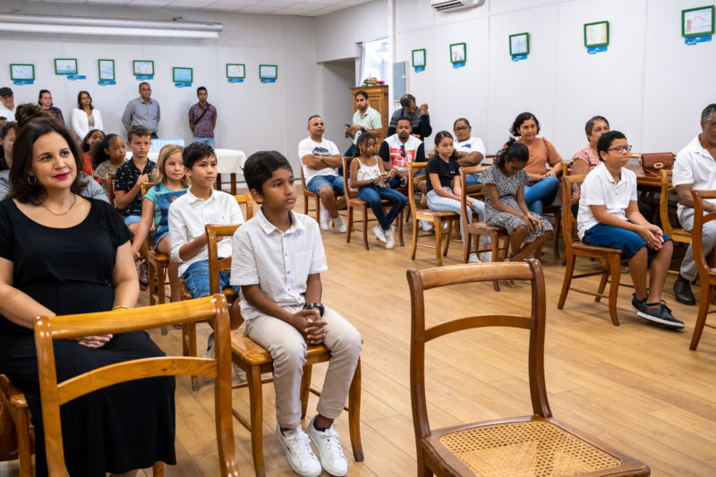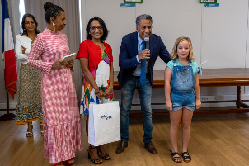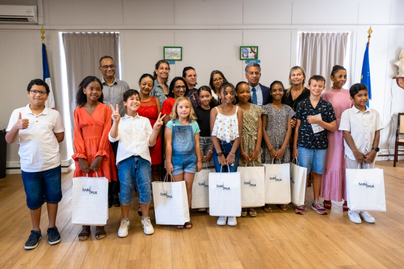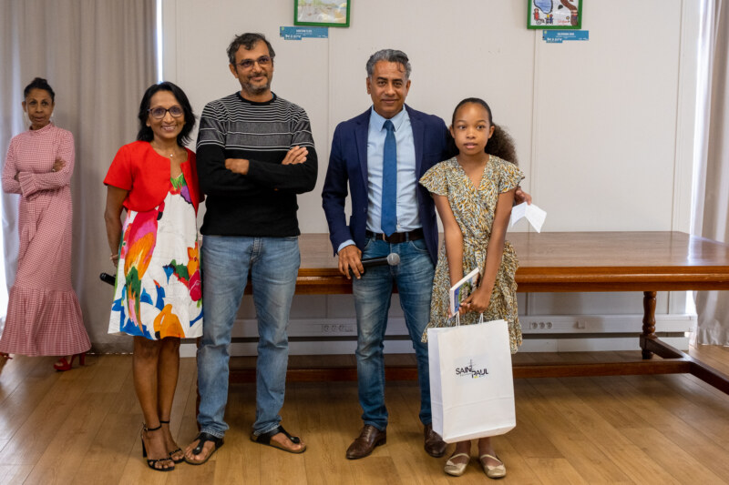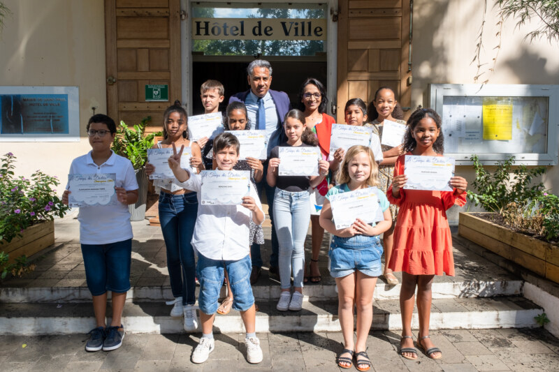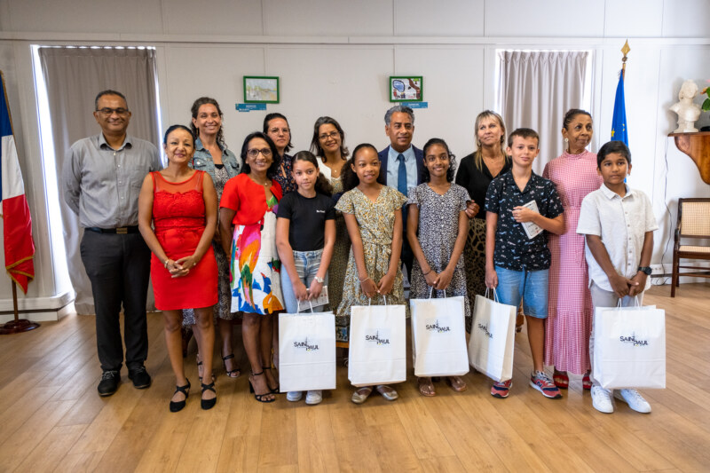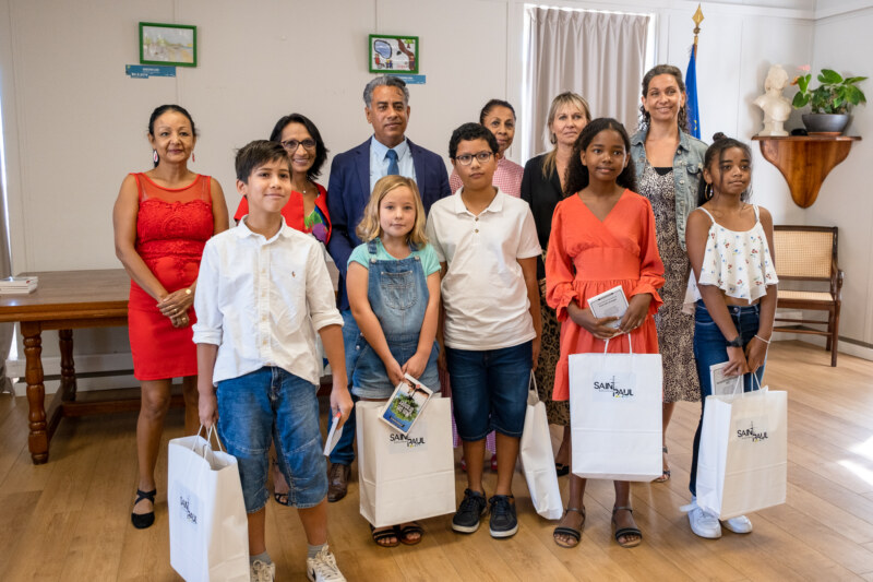 C’est avec un grand sourire que les 10 lauréats du “Temps des Dictées” étaient présents ce mercredi 22 juin à l’Hôtel de Ville de Saint-Paul pour recevoir leur prix. Ils ont été récompensés pour leur travail régulier en présence de leurs parents, mais aussi des conseillères pédagogiques de l’IEN, du CEDAACE (Centre Départemental Artistique pour l’Animation et la Culture des Enfants), de l’élue déléguée aux affaires scolaires, Nila RADAKICHENIN, du président de la Caisse des Ecoles et délégué au Plan Educatif Global, Salim NANA-IBRAHIM ainsi que des administratifs de la Ville de Saint-Paul.