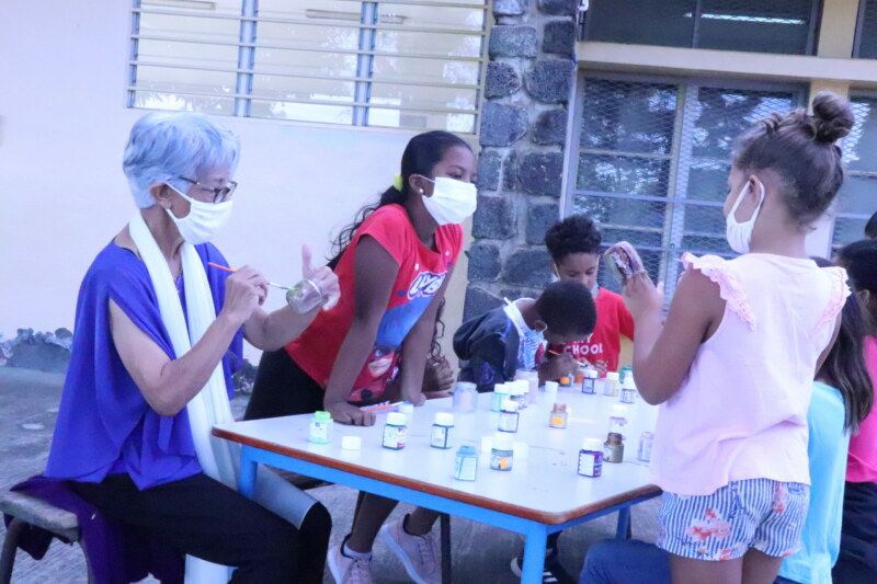 Dans la continuité des actions réalisées dans le cadre du Mois Bleu, tous les ans au mois d’octobre, cette rencontre a pour but de renforcer le lien intergénérationnel. Ce sont environ 60 enfants âgés entre 3 et 11 ans dans le secteur de Bois-de-Nèfles et 6 gramounes du club de 3ème âge « Vive la Joie » qui se retrouvent tous les mercredis jusqu’au 07 Juillet 2021 de 9h00 à 11h30, pour réaliser ensemble des activités diverses et variées à l’école primaire Yves-PAULA.