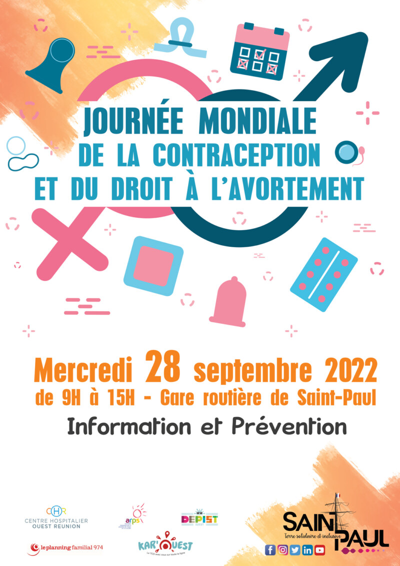 La Ville de Saint-Paul, labellisée “Ville Santé OMS” s’engage pour la Journée Mondiale de la contraception et du droit à l’avortement. La manifestation se déroulera le mercredi 28 septembre 2022 de 9h à 15h à la Gare routière de Saint-Paul.