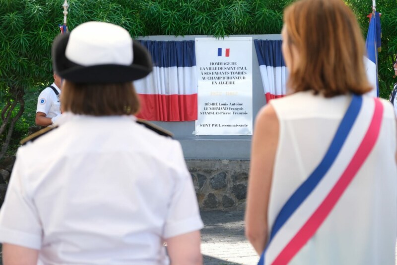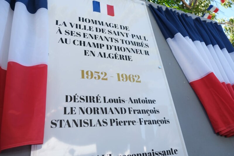 C’est en présence de l’élue Hélène ROUGEAU, déléguée aux Affaires Militaires ; de Sylvie CENDRE, Sous-Préfète de l’arrondissement Ouest ; de Karine LEBON, Députée de La Réunion ; d’Aurélien CENTON, conseiller Départemental, d’Hugues ZABERN, Président de la section Saint-Pauloise de l’Association des Anciens Combattants et Victimes de Guerre (ACVG) ; d’anciens combattants ; de Marie-Claire LAHISAFY, pupille de la nation des élu(e)s de la Ville et des enfants du Conseil Communal des Enfants et des Jeunes qu’un hommage a été rendu aux victimes de la guerre d’Algérie, aux soldats Réunionnais jamais revenus. Parmi eux, Louis-Antoine DÉSIRÉ, François Le NORMAND et Pierre-François STANISLAS sont tombés au champ d’honneur à l’image des 38 Réunionnais qui ont pris part, parfois malgré eux, à cette guerre qui a duré 8 ans.