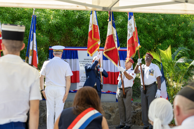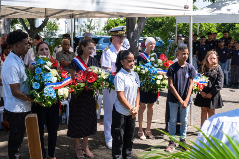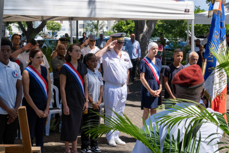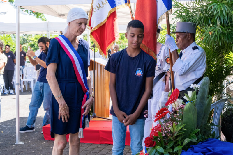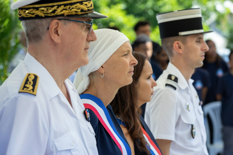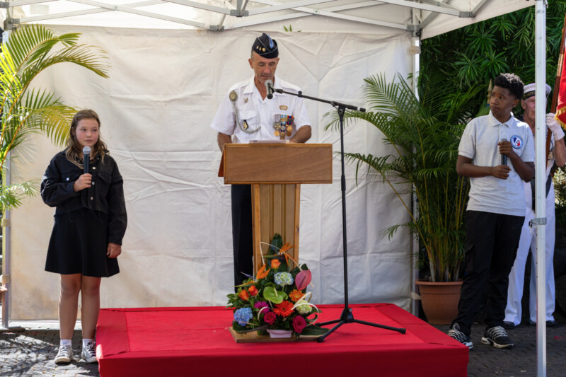 C’est en présence de l’élue Hélène ROUGEAU, déléguée aux Affaires Militaires ; de Philippe MALIZARD, Sous-Préfet de Saint-Paul ; de Karine LEBON, Députée de 2ème circonscription ; d’Evelyne CORBIÈRE, Sénatrice de La Réunion, d’Hugues ZABERN, Président de la section Saint-Pauloise de l’Association des Anciens Combattants et Victimes de Guerre (ACVG) ; de Christian DESSEIGNE, vice-Président de la section locale des ACVG ; des élu(e)s de la Ville, des enfants du Conseil Municipal des Enfants, des jeunes du Centre du service national et de la jeunesse de La Réunion et de Mayotte et des élèves de la classe défense du collège Célimène GAUDIEUX à La Saline, qu’un hommage a été rendu aux victimes de la guerre d’Algérie, aux soldats Réunionnais jamais revenus. Parmi eux, Louis-Antoine DÉSIRÉ, François Le NORMAND et Pierre-François STANISLAS sont tombés au champ d’honneur à l’image des 38 Réunionnais qui ont pris part, parfois malgré eux, à cette guerre qui a duré 8 ans. “À l’instar de 200 à 300 autres kréol, mués par leur courage, ils ont rejoint les troupes françaises. 38 valeureux soldats ne reverront alors plus jamais leur île, leur ville et leur famille. Cette stèle que nous avons derrière nous symbolise l’engagement de ceux qui ont payé le prix de leur vie pour permettre aux générations suivantes de continuer à vivre en liberté”, évoque Hélène ROUGEAU, élue aux Affaires Militaires.