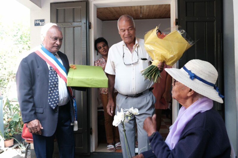 Saint-Paul, Ville Amie des Aînés, se réjouit de célébrer le centième anniversaire de cette charmante dame, Madame RAMSA née CADARSI Noeline Andréa. C’est accompagné des l’élus Dominique VIRAMA-COUTAYE et Guyto BELLON qu’ils ont célébré l’évènement.