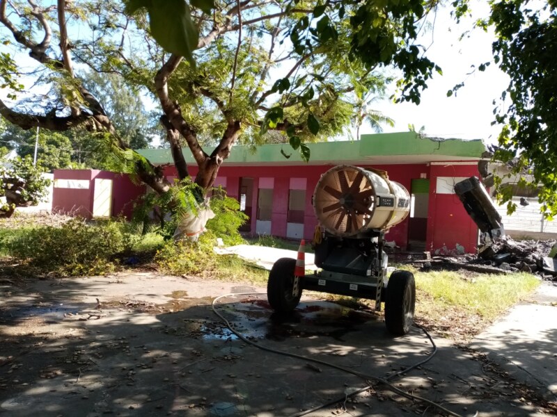 Entamé depuis novembre 2022, les travaux de déplombage de l’école maternelle Centre consistaient à supprimer toute trace de plomb identifié préalablement dans un bâtiment ou toute autre surface contenant ce matériau, dans le but de déconstruire/reconstruire ou rénover les lieux en chantier. Travaux de déplombage mais aussi de curage intégral du site (c’est-à-dire le nettoyage des éléments non constructifs d’un édifice (les menuiseries, les cloisons non porteurs, les revêtements des murs et des sols, etc.) y compris le tri sélectif des matériaux/équipements (bois, Déchets Non Dangereux, encombrants, mobiliers, équipements …) avec la mise en place de bennes pour les déchets et de containers pour la récupération. Un broyage pour les déchets verts a également été mis en place. La démolition mécanique des superstructures a débuté ce lundi 20 février 2023 et devra se poursuivre jusqu’au 17 mars 2023. Les opérations de déconstruction sont réalisées à la pince/cisaille de démolition, moins émissives en bruit. Des bidims de protection et un canon brumisateur sont également utilisés afin de limiter l’émission de poussière. Ces travaux de déconstruction sont réalisés en prenant en compte l’environnement urbain (horaires et jours adaptés, hors jours de marché forain, etc.). Il est à noter que tous les arbres présents sur le site et toutes les clôtures présentes actuellement sur site sont conservés. Des protections ont également été mises en place autour des arbres.